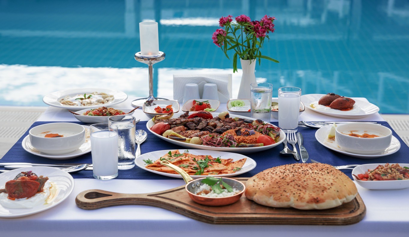 Viesnīcā ir vairāki restorāni, tostarp turku, itāļu un zivju ēdienu à la carte restorāni, kā arī vairāki bāri, kas piedāvā plašu vietējo un starptautisko ēdienu un dzērienu izvēli.