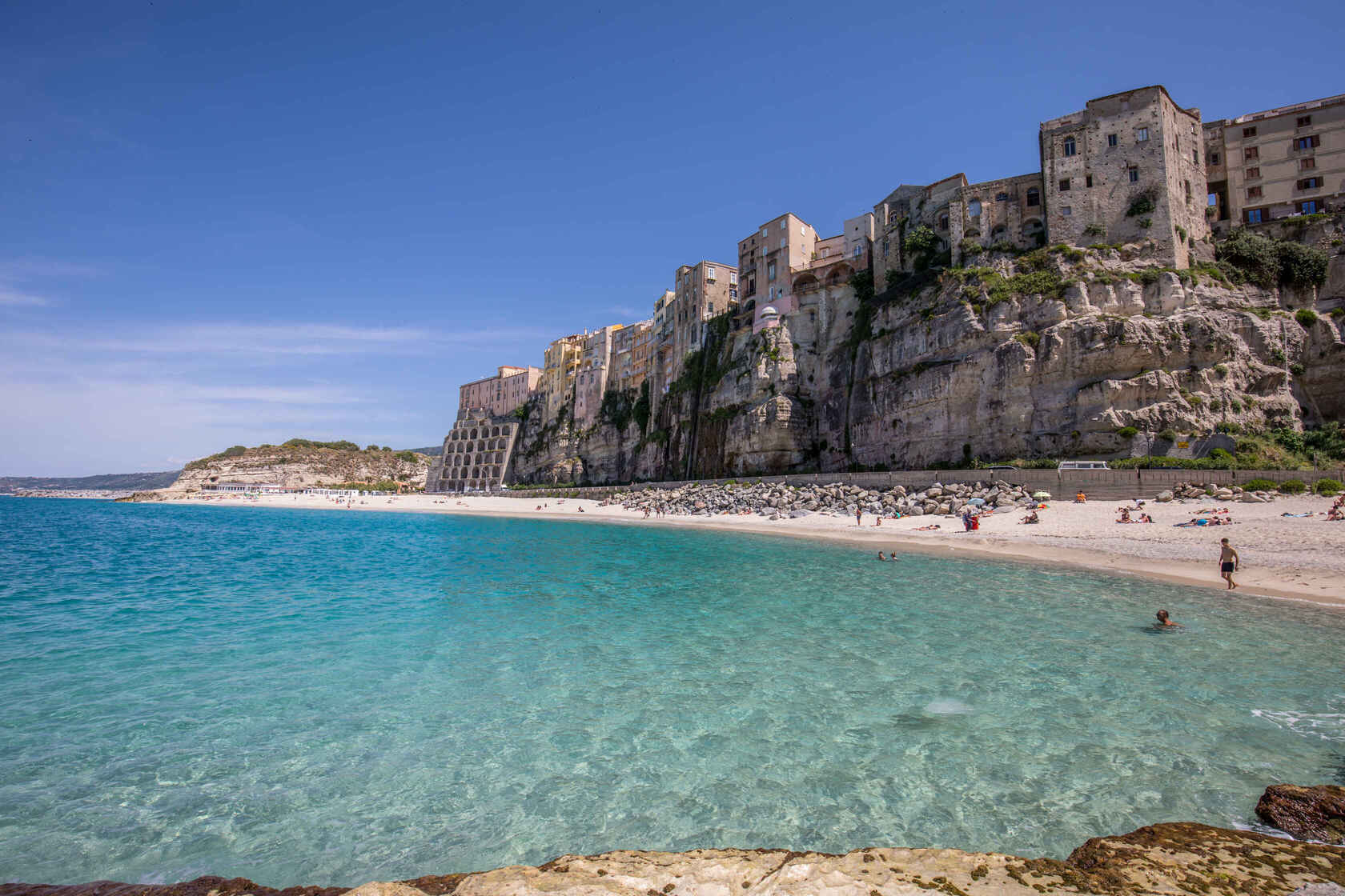 Tropea - gleznaina pilsētiņa uz klints ar baltu pludmali un tirkīza ūdeni, bieži dēvēta par “Vidusjūras pērli”.