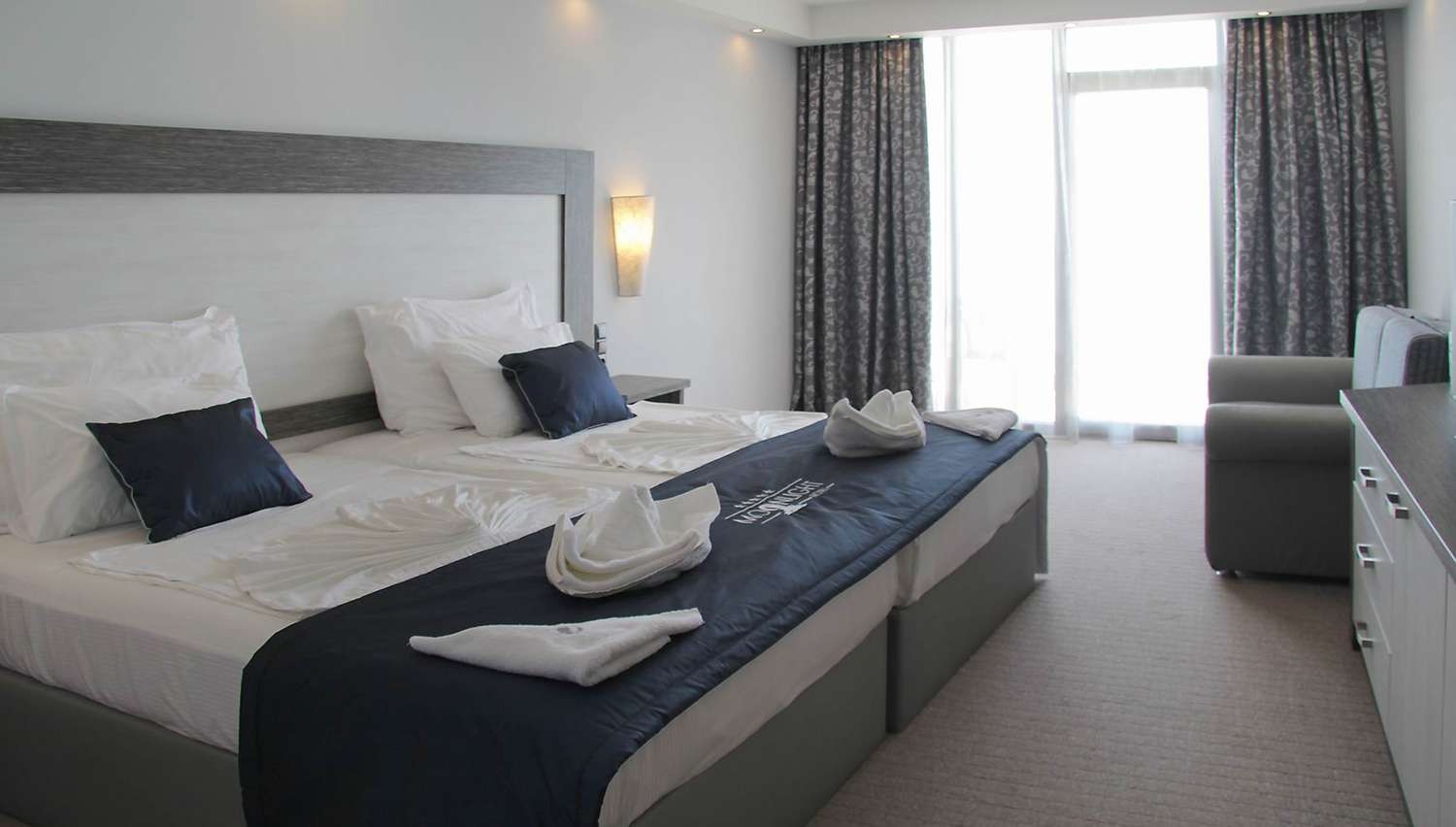 - standard sea view rooms (1 divvietīgā gulta vai 2 vienvietīgās gultas, izvelkams dīvāns, maks. 2+1 vai 3 cilv., 25 m2);