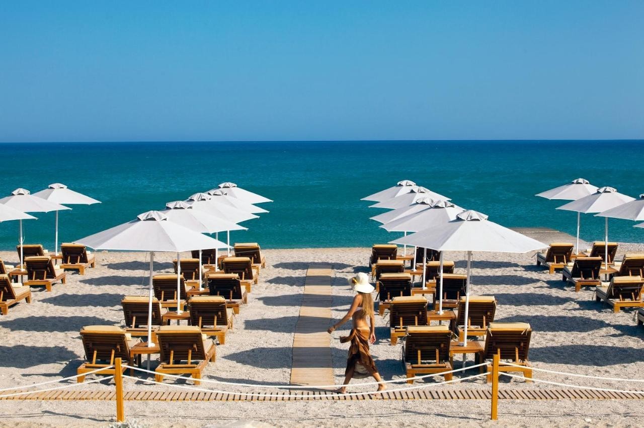 Deluxe Junior Villa SV Private Pool (skats uz jūru, atrodas tiešā jūras tuvumā, dizains Krētai raksturīgā stilā; guļamistaba ar viesistabas zonu; 1 divvietīgā gulta vai 2 vienvietīgās gultas, papildu gulta – dīvāngulta, vannasistaba ar marmora apdari; terase ar atpūtas krēsliem un privātu baseinu; maks. 2 cilv., 125 m2);