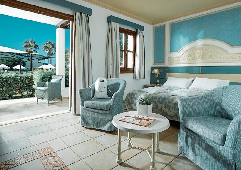 Junior Suite Sharing Pool (koplietošanas baseins vairākām istabām, guļamistaba ar dzīvojamo zonu, gulta - 2 vienvietīgas gultas (divvietīgā pēc pieprasījuma), papildu gultas – 2 vienvietīgas sofas, maks. 3+1 cilv., 49 m2);