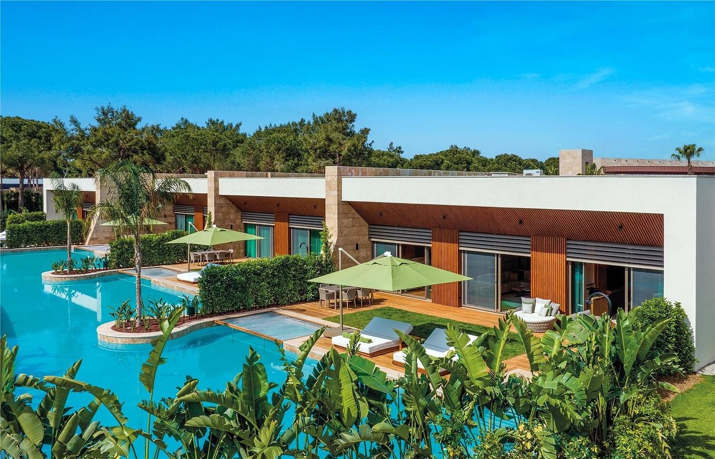 Izmitināšanas iespējas ietver 343 apartamentus un 15 villas. Liela a la carte restorānu izvēle, kā arī jumta restorāns un bārs. Kopā bāri visā teritorijā 21 (ietver arī uzkodu bārus/kafejnīcas) Bērniem bērnu klubiņš, iekštelpu un āra rotaļu laukumi, bērnu pieskatīšana un tematiskais akvaparks.
