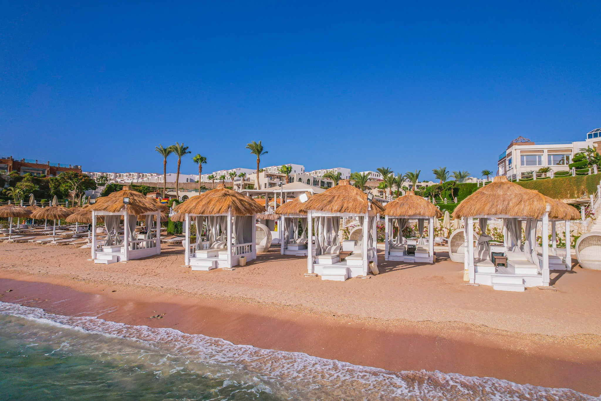 в 10 км от аэропорта г. Шарм-эль-Шейха, в 10 км от бухты Наама-Бей, в 15 км от Старого города, в районе Sharks Bay, на самом берегу моря.